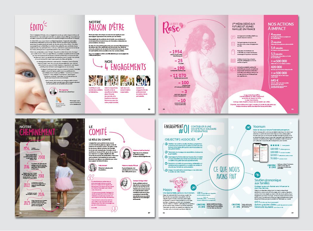 Projet : Conception de la maquette, mise en page et actualisation du rapport annuel dressant le bilan des actions de l'Entreprise à Mission et leur adéquation avec les engagements.